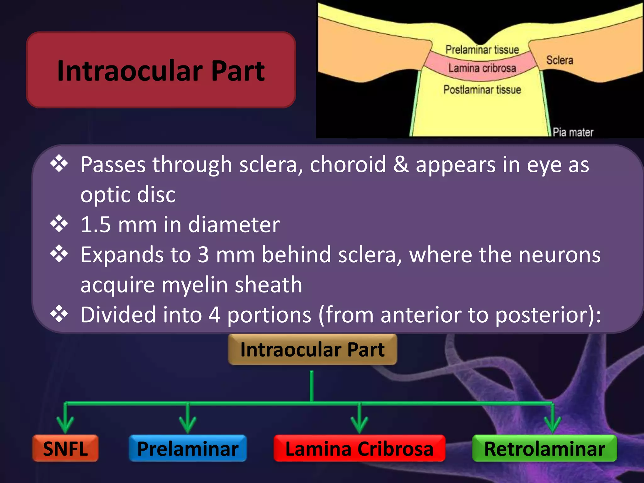 Optic Nerve by ANOZER on DeviantArt Biology Diagrams In the center of the retina is the optic nerve, a circular to oval white area measuring about 2 x 1.5 mm across. A simplistic wiring diagram of the retina emphasizes only the sensory photoreceptors and the ganglion cells with a few interneurons connecting the two cell types such as seen in Figure 2. Fig. 2. Simple organization of the retina. Download scientific diagram | Schematic of the optic nerve and its different segments. Schematic of the optic nerve and its different segments. from publication: A Narrative Review of Point of